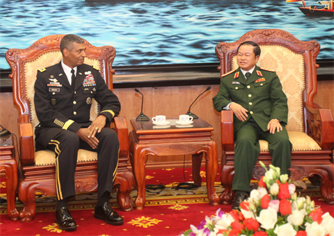 Le général d’armée Vincent Brooks a informé son interlocuteur des résultats de la récente séance de travail entre la délégation du commandement de l’Armée américaine du Pacifique et le chef adjoint de l’état-major général de l’Armée populaire du Vietnam, Vo Van Tuân. Lors de cette séance de travail, les deux parties ont échangé certains contenus sur l’intensification des relations entre les deux Armées de terre, conformément au partenariat intégral. Elles ont également apprécié les résultats de coopération entre les deux armées sur la base du mémorandum d’intensification de la coopération bilatérale dans la défense, signé en 2011. Elles ont fixé les orientations de coopération dans les temps à venir dans la recherche et le sauvetage, la médecine militaire, le partage d'expériences dans l'édification des forces onusiennes de maintien de la paix.