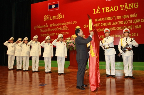 | Remise de l'Ordre de la Liberté de 1re classe de l'Etat lao au commandement des gardiens de la paix, le 23 février à Hanoi. |
