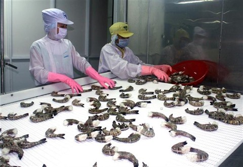 | Traitement des crevettes à la Compagnie d'import-export des produits aquatiques de Cà Mau au Sud. |