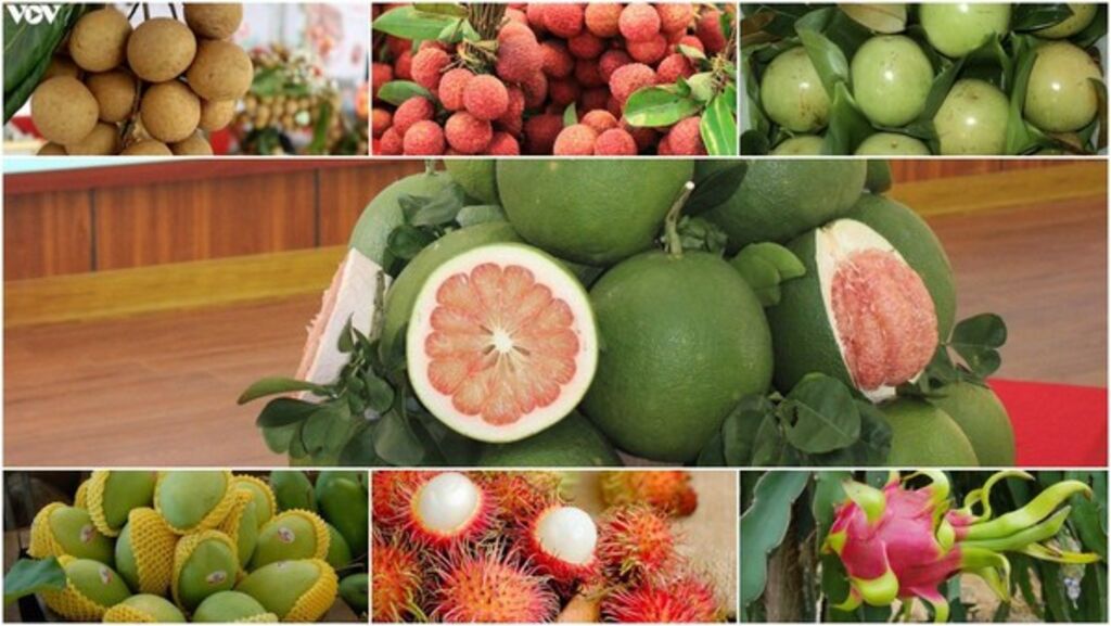 | Le pomelo frais (Citrus maxima) est le 7e fruit vietnamien autorisé à être importé aux États-Unis après la mangue, le longane, le litchi, le fruit du dragon, le ramboutan et la pomme de lait. |