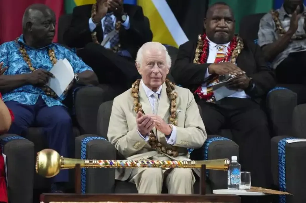 | Le roi Charles III applaudit lors de la cérémonie d'ouverture de la réunion des chefs de gouvernement du Commonwealth à Apia, Samoa, le 25 octobre. |