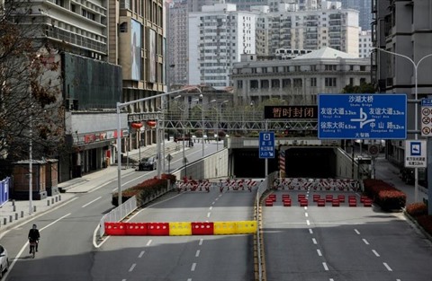 | Des avenues coupées à la circulation et désertes à Wuhan, le 15 mars en Chine. |