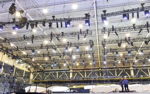 | Le centre international des expositions de Kiev où se déroulera le concours Eurovision, le 11 avril. |