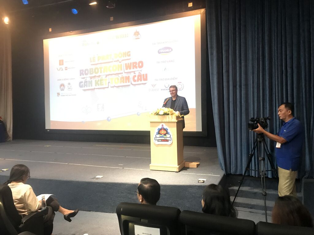 | Troels Jakobsen, conseiller auprès de l’ambassade du Danemark, annonce le 26 mai le lancement du concours de Robotacon Wro 2023 pour la région du Nam Trung Bô (Centre méridional). |