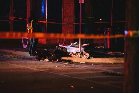 | Des débris sur une route à Waukesha (États-Unis) le 21 novembre, où une voiture a percuté une foule rassemblée pour une parade de Noël. |