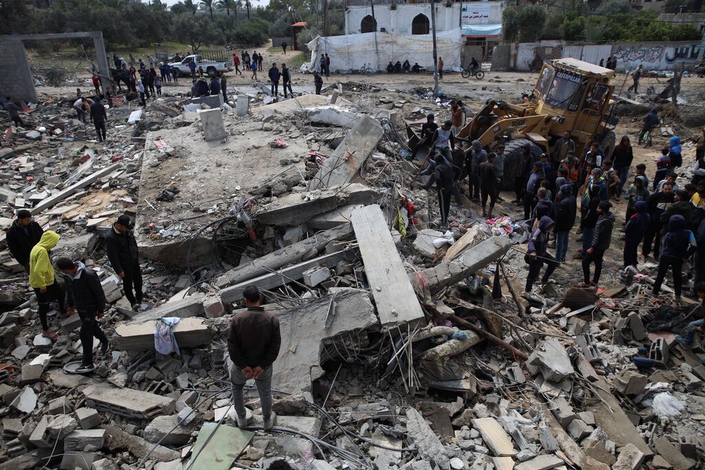 | Scène en ruine après une frappe aérienne israélienne sur le camp de réfugiés de Nuseirat dans la bande de Gaza, le 19 mars 2024. |