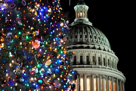 | Le siège du Congrès américain derrière un sapin de Noël, le 1er décembre. |