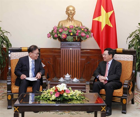 | Park Soo-kwan (gauche), consul général honoraire du Vietnam à Busan-Gyeongnam, et le Premier ministre Pham Binh Minh, le |
