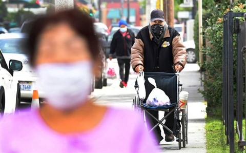 | Dans une rue à El Monte, en Californie, le 20 avril. |