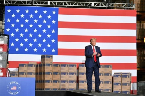 | Le président Donald Trump lors de la visite d'un distributeur de matériel médical, le 14 mai à Allentown, en Pennsylvanie. |