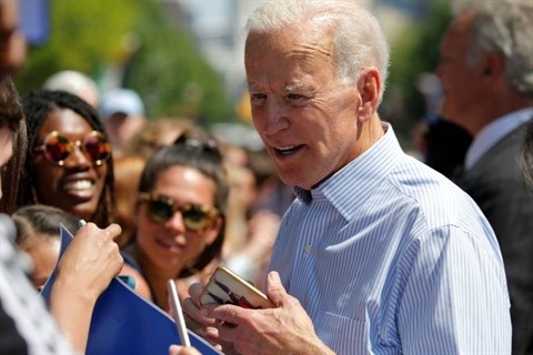 | Joe Biden rencontre des partisans au début de sa campagne pour les primaires démocrates, le 18 mai 2019 à Philadelphie, en Pennsylvanie. |