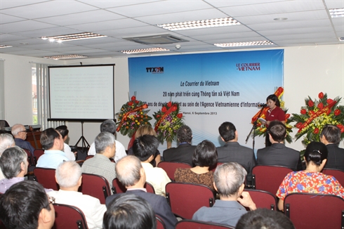 Présent à la cérémonie de célébration de cet événement organisée le vendredi après-midi 6 septembre au siège du journal, le directeur général de la VNA, Nguyên Duc Loi, a affirmé que depuis l’adhésion à la VNA, Le Courrier du Vietnam se développe progressivement tant sur le contenu et que sur la forme. Le hebdomadaire de quatre pages en noir et blanc du premier temps est devenu aujourd’hui un magazine hebdo de 64 pages dont le contenu est riche d'infos et la forme attrayante. "Vingt ans, ce n’est pas une longue durée, mais cela est suffisant pour revoir et évaluer une étape de développement du seul journal en langue française au Vietnam, édité par la VNA et distribué au Vietnam et à l’étranger", a-t-il souligné.
