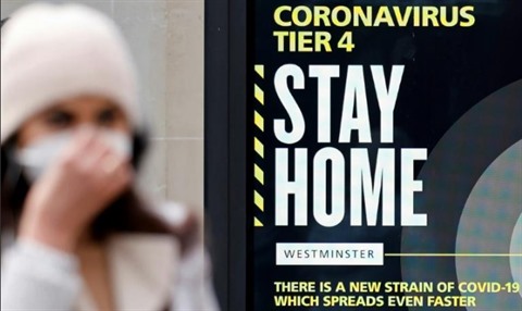 | Un panneau affichant l'alerte du COVID-19, élevé au niveau 4, dans les rues de Londres, sensibilise les Londoniens à rester chez eux, le 23 décembre. |