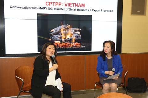 | La ministre canadienne de la Petite Entreprise et de la Promotion des exportations, Mary Ng (à gauche), lors du séminaire "CPTPP: Vietnam" tenu à Toronto. |