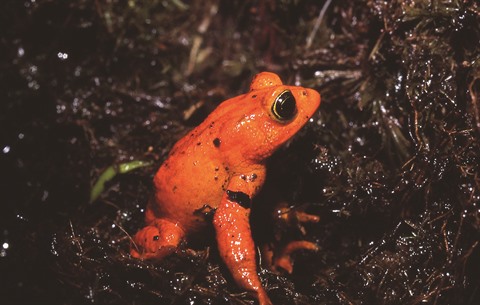 | Cliché datant de 1987 d’un crapaud doré dans la Réserve biologique de Monteverde au Costa Rica. |