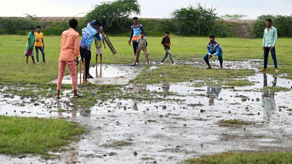 "Nous jouons au cricket chaque jour, dit Kaushik Ashok, âgé de 20 ans, portant le maillot de l’équipe du village au bord du terrain détrempé où courent des enfants. Nous travaillons, nous pêchons, puis nous jouons au cricket".
