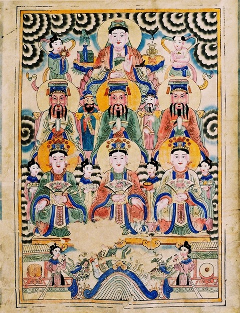 Parmi les divinités du panthéon vietnamien, les "Trois Saintes Mères" sont les plus connues et aussi les plus populaires: "Déesse-mère du Ciel" (Princesse Liêu Hânh) qui gouverne le ciel, "Déesse-mère des Montagnes et Forêts" qui régit 81 portes et les zones montagneuses, "Déesse-mère de l'Eau", qui gouverne l'eau, la pluie, du vent et les poissons. Elle s'habille toujours de vêtements blancs, symboles de pureté:
