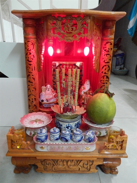 | Le culte des Génies du sol et de la fortune se pratique dans la plupart des familles du Sud du Vietnam. Photo : Quang Châu/CVN |