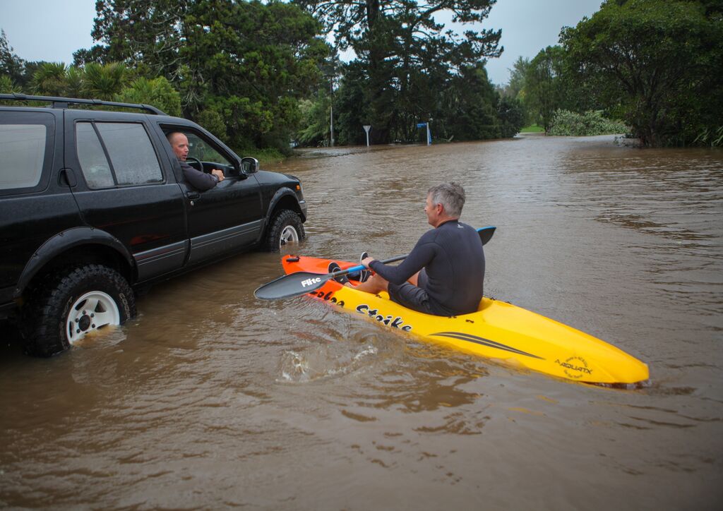 | Des inondations à Auckland, en Nouvelle-Zélande, causées par le cyclone Gabrielle. |