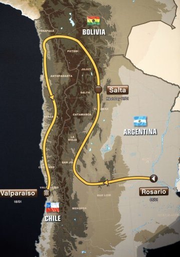 Le départ sera donné le 5 janvier depuis Rosario, en Argentine, avant une grande boucle vers le Nord et la Bolivie, puis une descente chilienne et une arrivée le 18 à Valparaiso. Il s'agira là aussi d'une première puisque le Dakar sud-américain avait pris l'habitude d'arriver dans une capitale (Buenos Aires, Lima et Santiago).