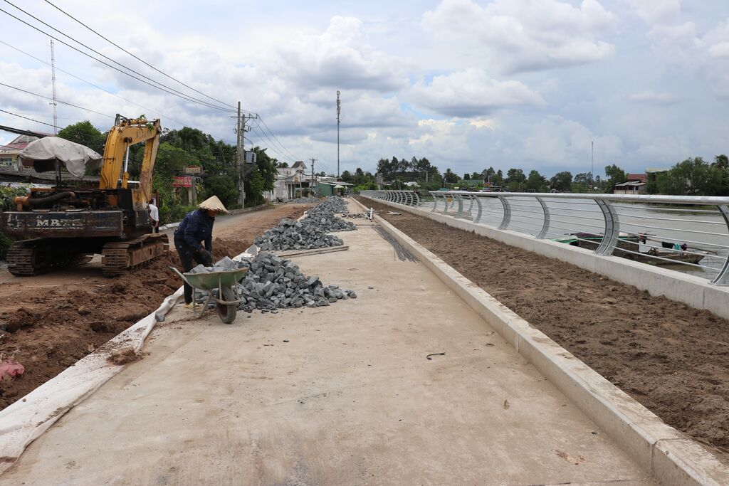 | La construction de la digue contre les éboulements dans le district de Cái Bè, province de Tiên Giang, est l'un des projets d'investissements publics mis en oeuvre dans cette localité du delta du Mékong. |