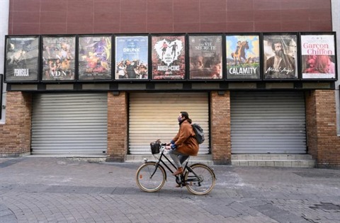 | Devant un cinéma de Montpellier (Sud de la France), fermé pour cause de confinement, le 16 novembre. |