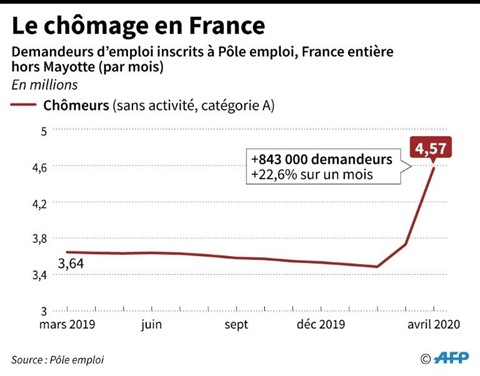 L’urgence pour l’exécutif est aussi de relancer la machine économique alors que le chômage a bondi de 22% en avril avec 843.000 demandeurs d’emploi supplémentaires, a annoncé jeudi 28 mai Pôle emploi. "C’est malheureusement historique", a déploré Edouard Philippe. En prévenant que la France allait "devoir se battre contre l’impact d’une récession historique".