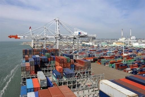 | Le port du Havre où arrivent des porte-conteneurs chargés de marchandises du monde entier. |