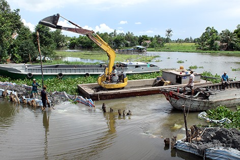 | Travaux de construction d'un système hydraulique sur le fleuve Cai Lon pour contrôler la salinité. |