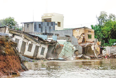 | Le Mékong et ses affluents sont gravement touchés par l’érosion et l’affaissement des rives. |