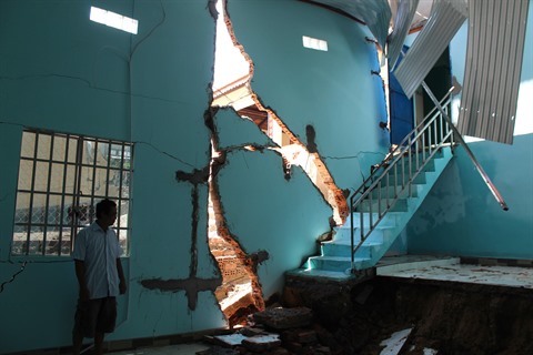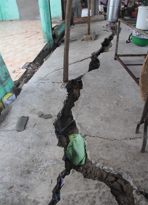 | Des crevasses du plancher de béton de la maison d'un habitant dans la province d'An Giang. |