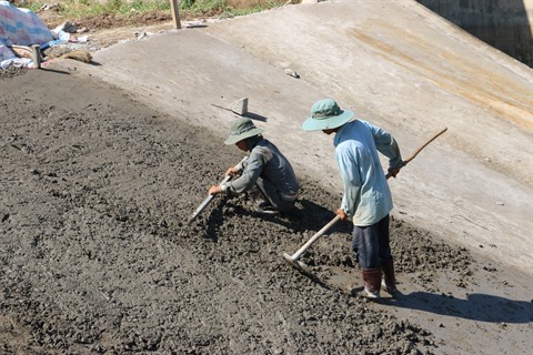 | Construction d'un barrage anti-salinisation pour stocker de l’eau douce dans le district de Hon Dât, province de Kiên Giang. |