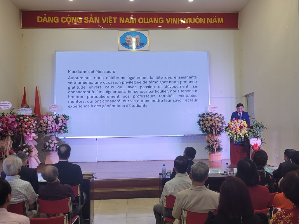 | La cérémonie de célébration du 40e anniversaire du campus du Département de français de l’ULIS et de la Journée des enseignants vietnamiens, le 16 novembre à Hanoï. |