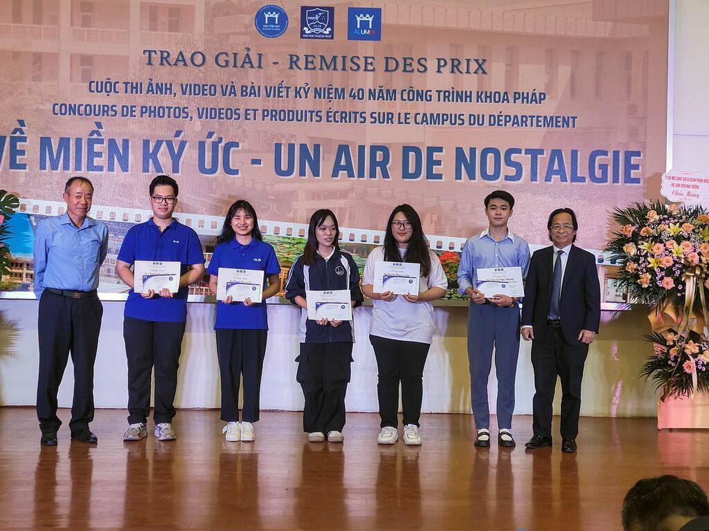 | La remise des prix de vidéos du concours "Campus du Département de français - Un air de nostalgie". Photo : Quê Anh/CVN |