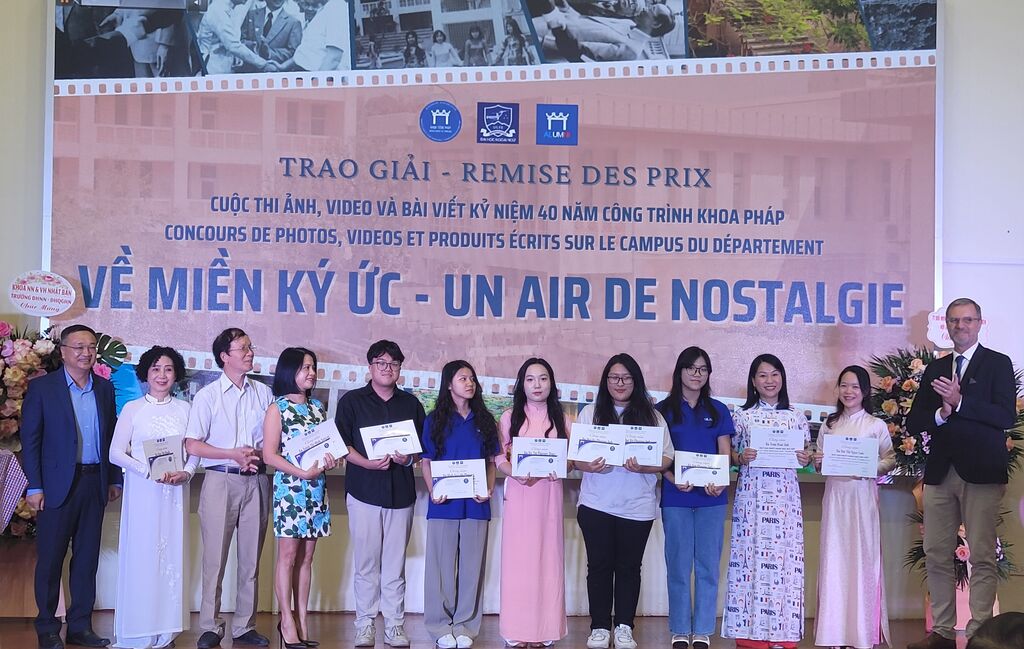 | La remise des prix de photos du concours "Campus du Département de français - Un air de nostalgie". Photo : Quê Anh/CVN |