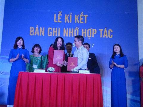 | La signature du mémorandum de coopération entre le Département de français de l’Université de Hanoï et 15 agences de tourisme. |
