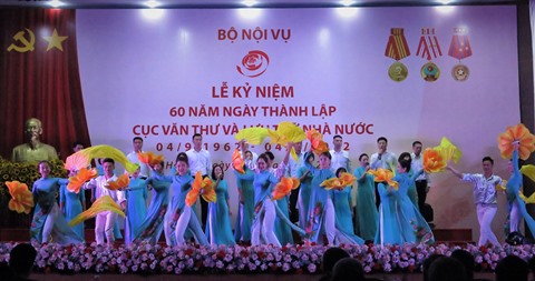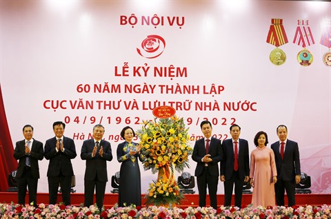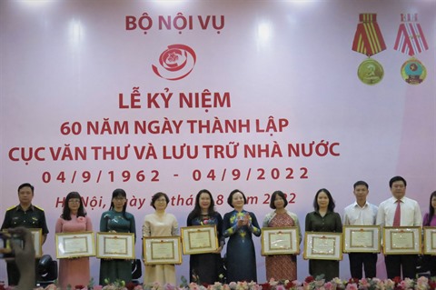 | Cérémonie de célébration du 60e anniversaire du Département de gestion des documents et des archives de l'État, le 31 août à Hanoï. |