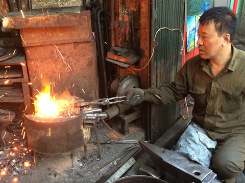 La période d'or de la forge à Hanoï a été pendant la génération de son grand-père, c’est-à-dire dans les années 1940-50. «Mon grand-père a apporté ici le métier traditionnel du village de Hoè Thi. Il a fabriqué la première machine à tisser pour le village de la soie de Van Phuc, inspirée d’une version française. Mon père, quant à lui, forgeait principalement des instruments pour des troupes de théâtre comme épées, couteaux, etc.».