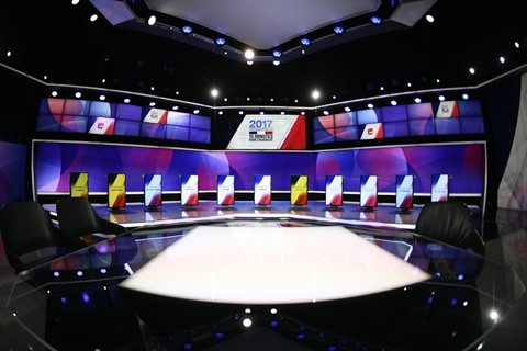 | Les studios de France 2 où se succèdent les onze candidats à la présidentielle française, le 20 avril. |