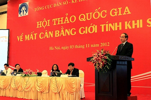 | Le vice-Premier ministre Nguyên Thiên Nhân lors du colloque national sur le déséquilibre des sexes à la naissance, le 3 novembre à Hanoi. |