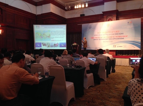 | Lors de la conférence franco-vietnamienne sur les technologies spatiales et ses applications, tenue le 12 mai, à Hanoi. |