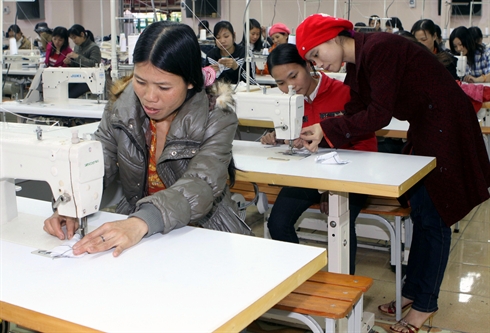 | Des travailleuses rurales apprennent le métier de couture dans le cadre d’une formation professionnelle en faveur des paysannes du district de Ba Vi (Hanoi). |