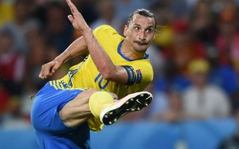 | Zlatan Ibrahimovic avec la Suède à l'Euro-2016, le 22 juin à l'Allianz Riviera à Nice. |