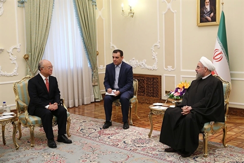 M. Amano a aussi rencontré dimanche 20 septembre le président iranien Hassan Rohani dans la capitale Téhéran ainsi que le président de l'Organisation iranienne de l'énergie atomique Ali Akbar Salehi et le ministre iranien des Affaires étrangères Mohammad Javad Zarif.