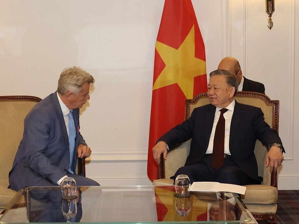 | Le secrétaire général du Parti communiste du Vietnam (PCV) et président vietnamien, Tô Lâm (droite), a rencontré le secrétaire national du Parti communiste français (PCF), Fabien Roussel. |