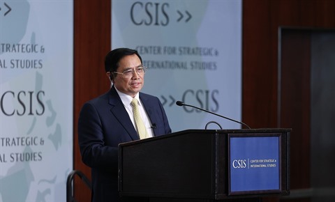 | Le Premier ministre Pham Minh Chinh au Centre d’études stratégiques et internationales à Washington, le 11 mai |