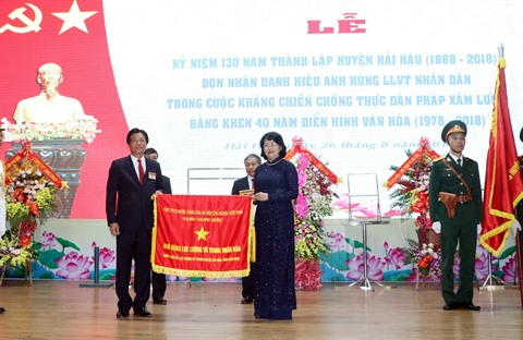 À cette occasion, le disrtict de Hai Hâu s’est vu décerner le titre de "Héros des forces armées dans la résistance aux colonialistes français".