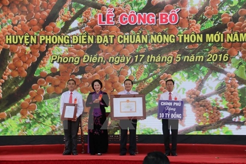 | La présidente de l’Assemblée nationale Nguyên Thi Kim Ngân remet le 17 mai la décision reconnaissant Phong Diên comme premier district néo-rural de Cân Tho (Sud). |