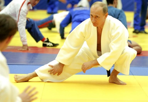 | Vladimir Poutine sur un tatami à Saint-Pétersbourg en 2010. |