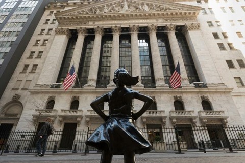 | La facade de la Bourse de New York à Wall Street, le 23 mars. |